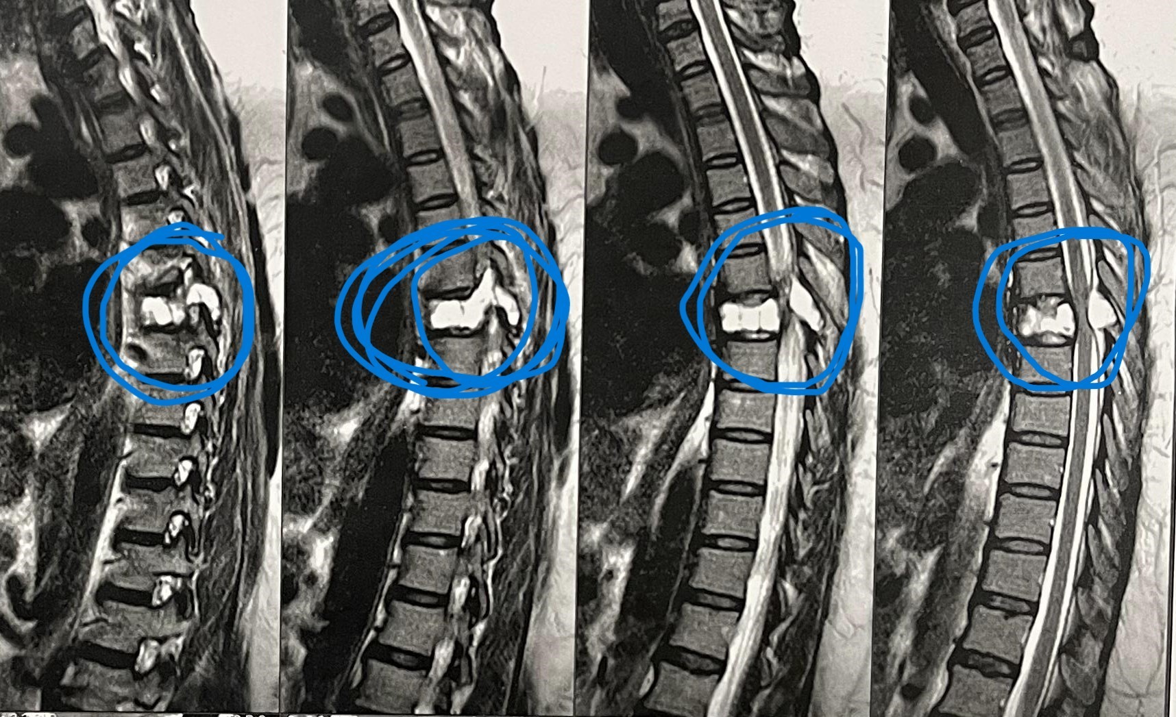 A 43-year-old woman suffering from progressive weakness in both lower limbs was diagnosed and treated. This condition affects walking ability and mobility, requiring thorough neurological evaluation to determine the underlying cause and develop an appropriate treatment plan.